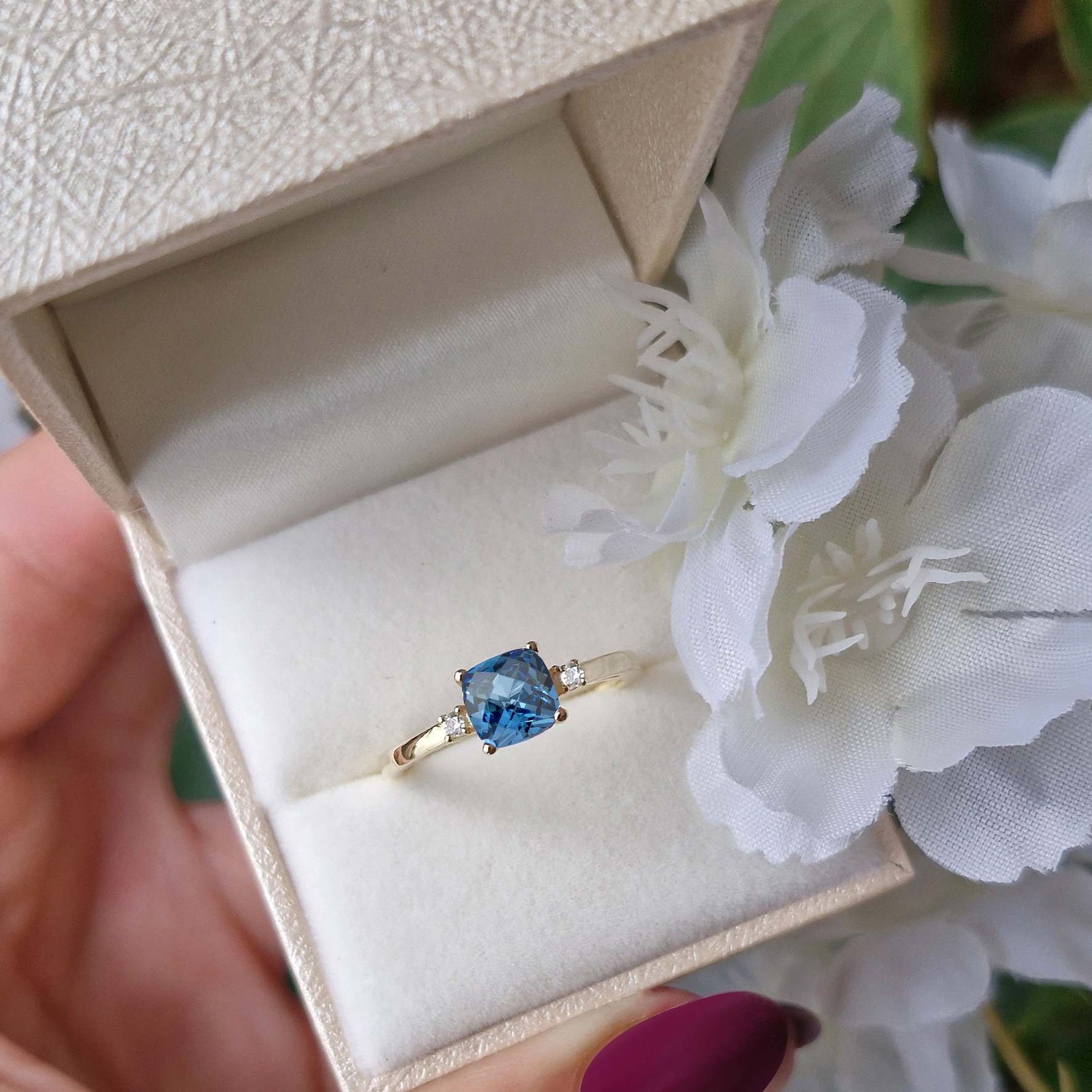 Oprawione kamienie: cyrkonia cushion tanzanit, cyrkonie