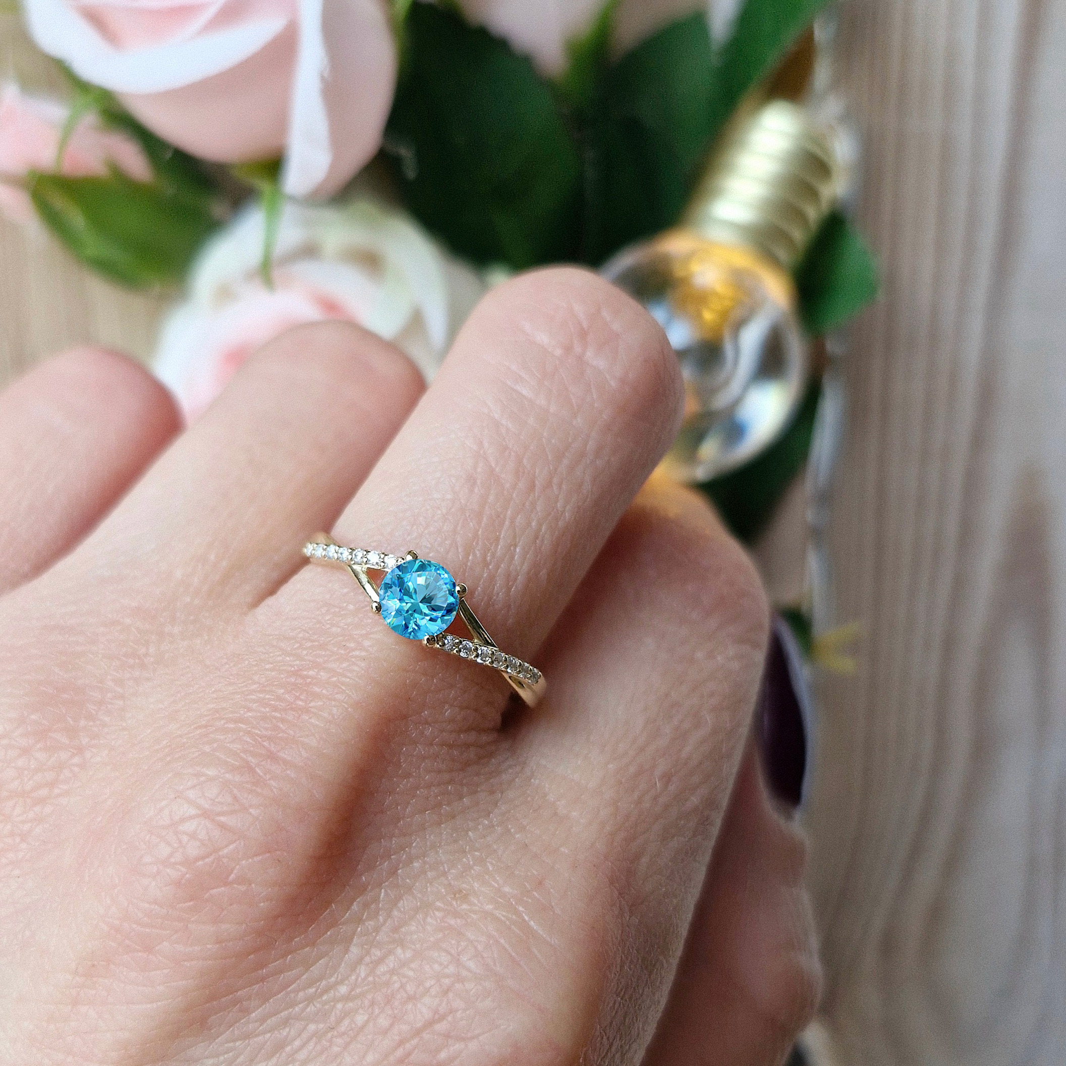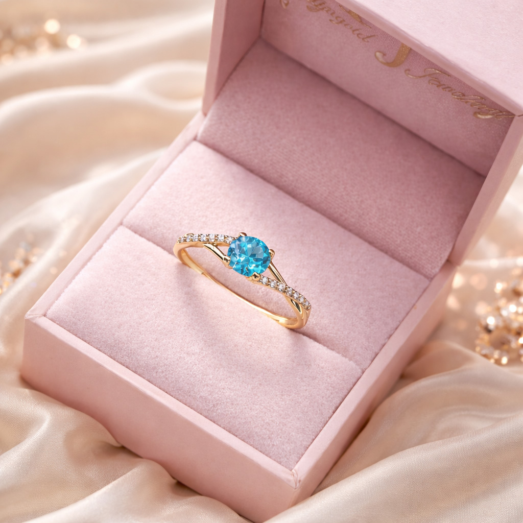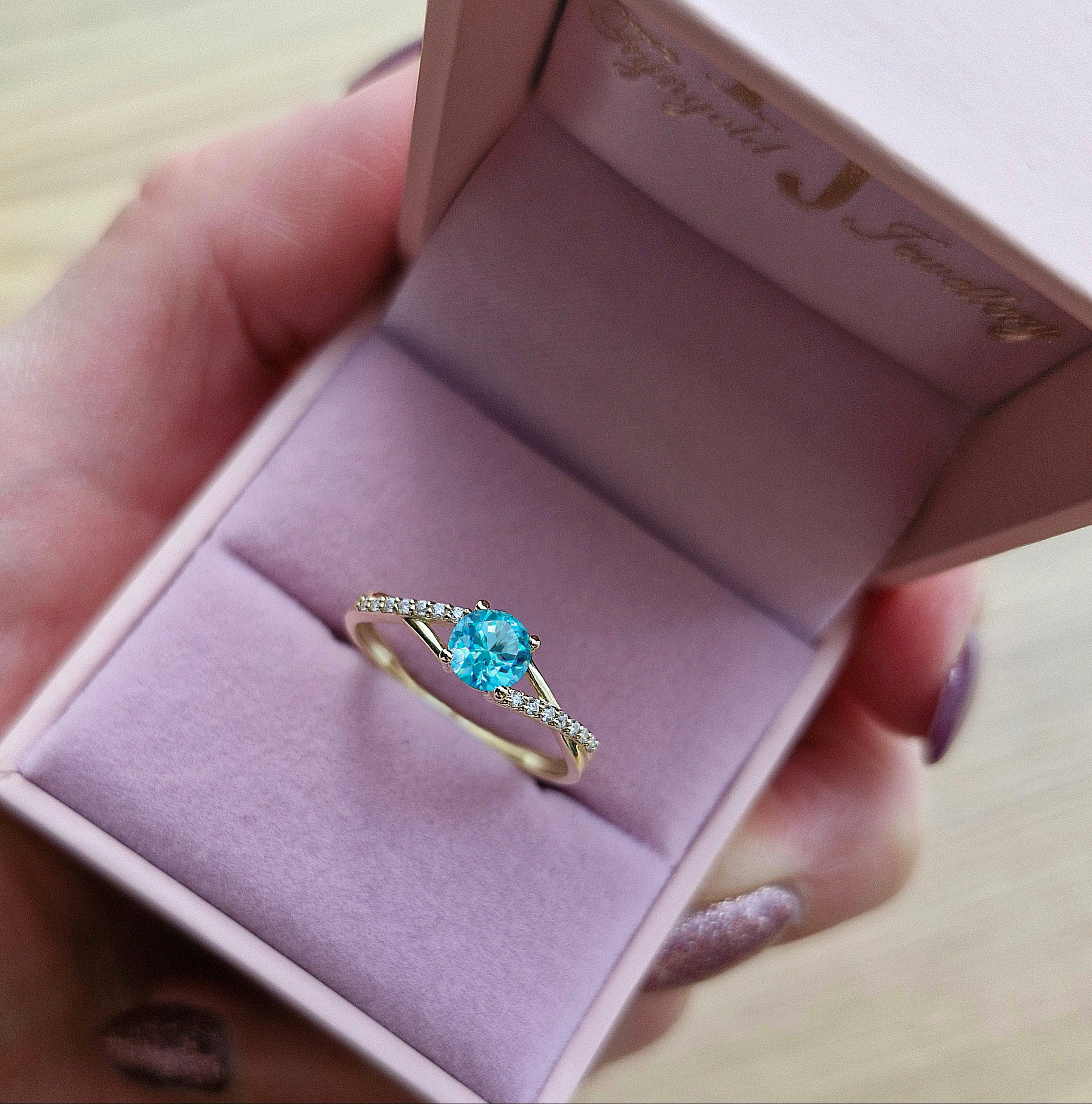 ♥ Oprawa centralny kamień : Topaz Swiss Blue ~ 0,50ct ( szlif brylantowy )