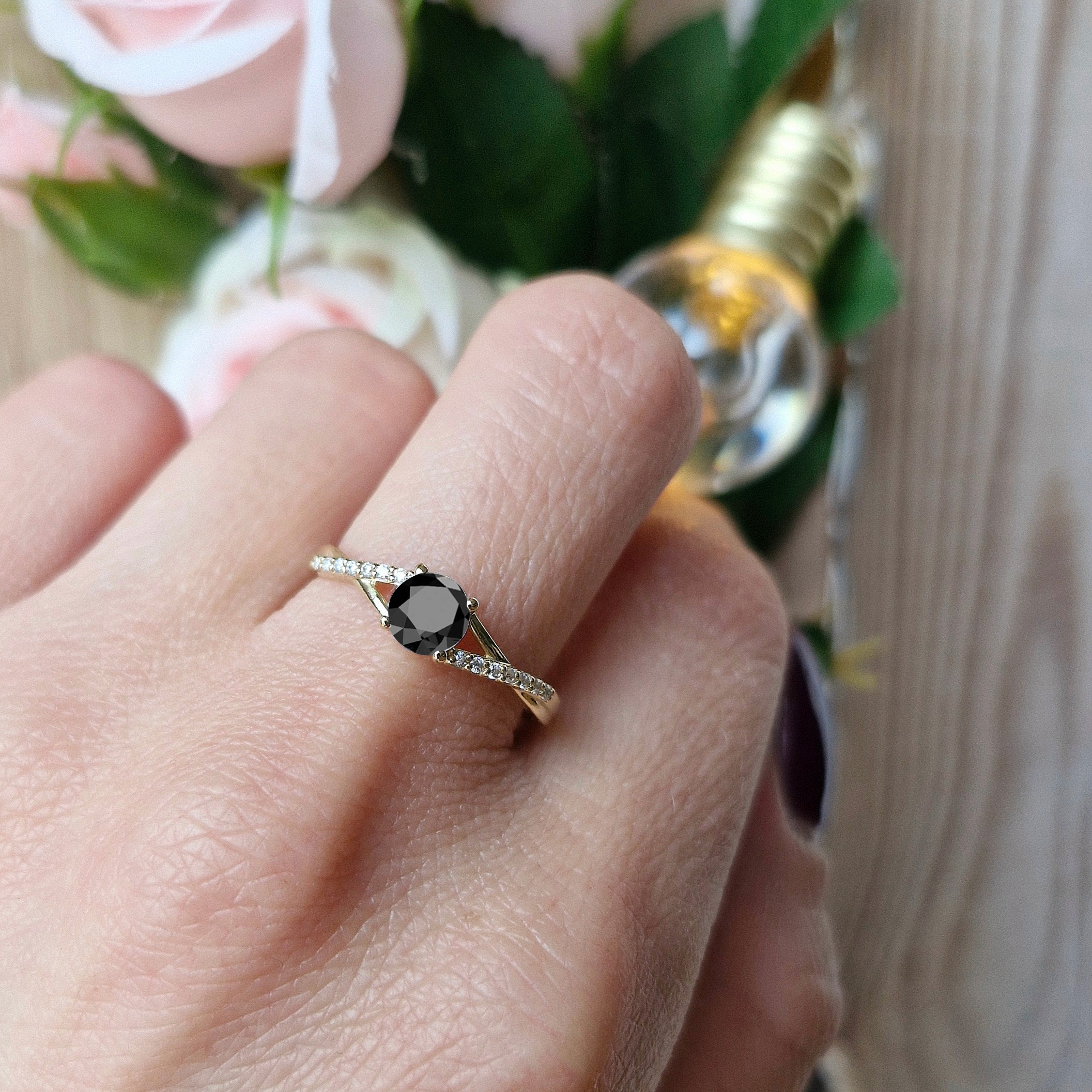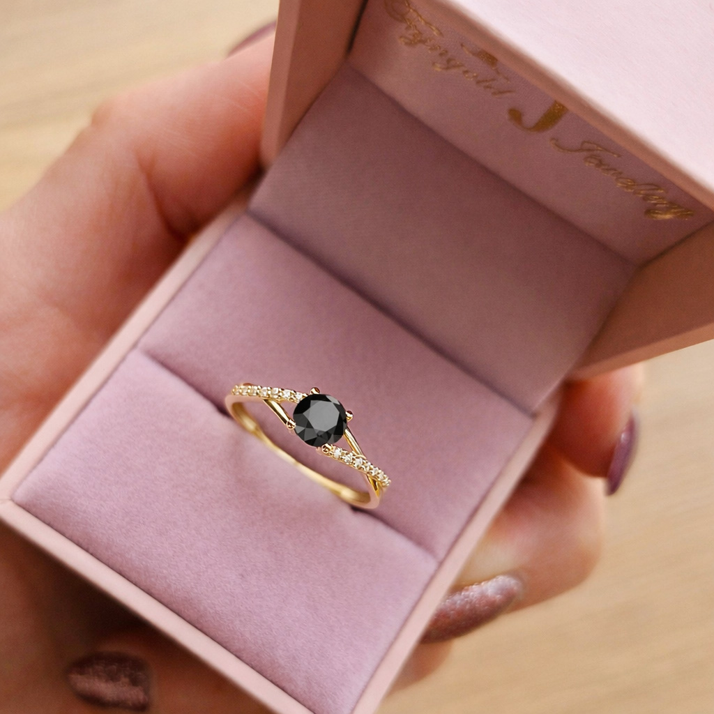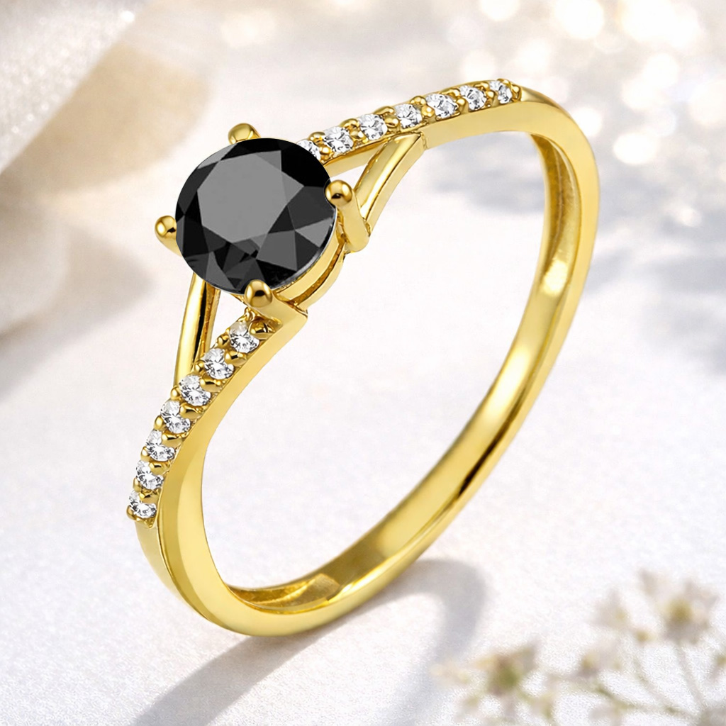 ♥ Oprawa centralny kamień : Diament czarny 0,50ct (szlif brylantowy)